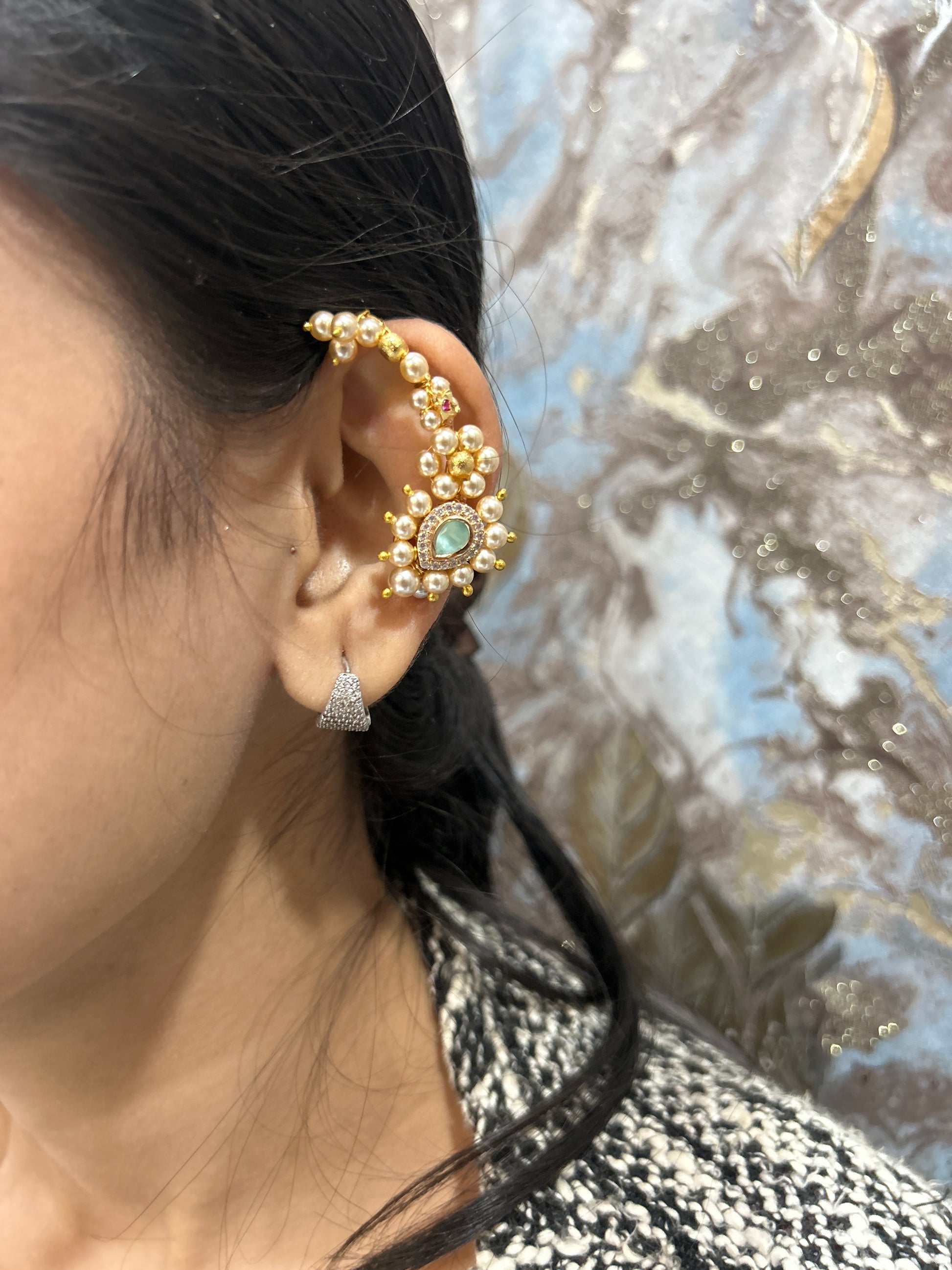Inspired by the timeless beauty of the Maharashtrian Nath, this Nath-style earcuff is a perfect blend of tradition and contemporary comfort.